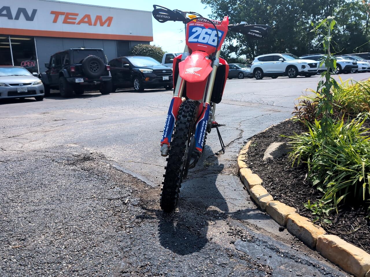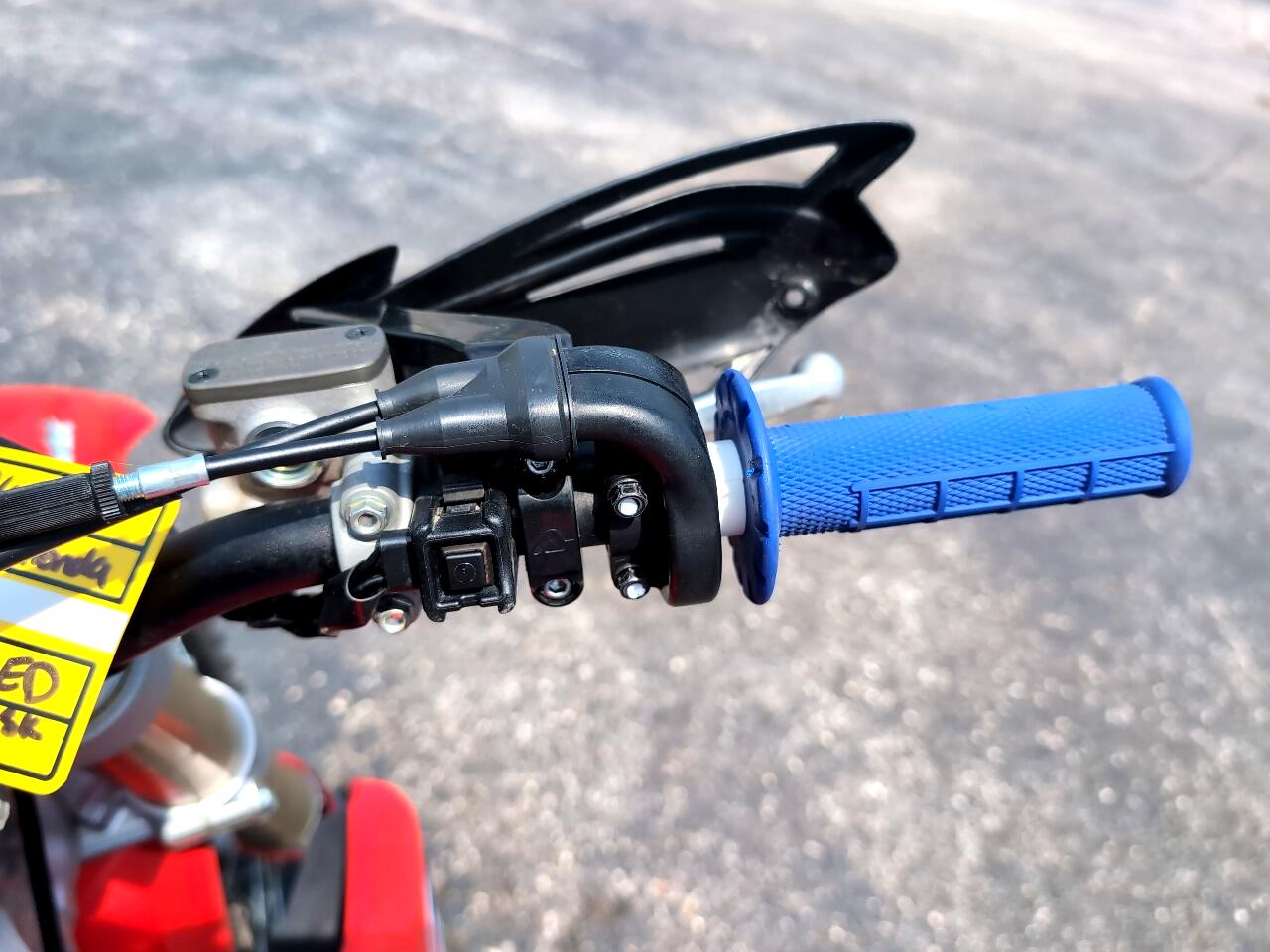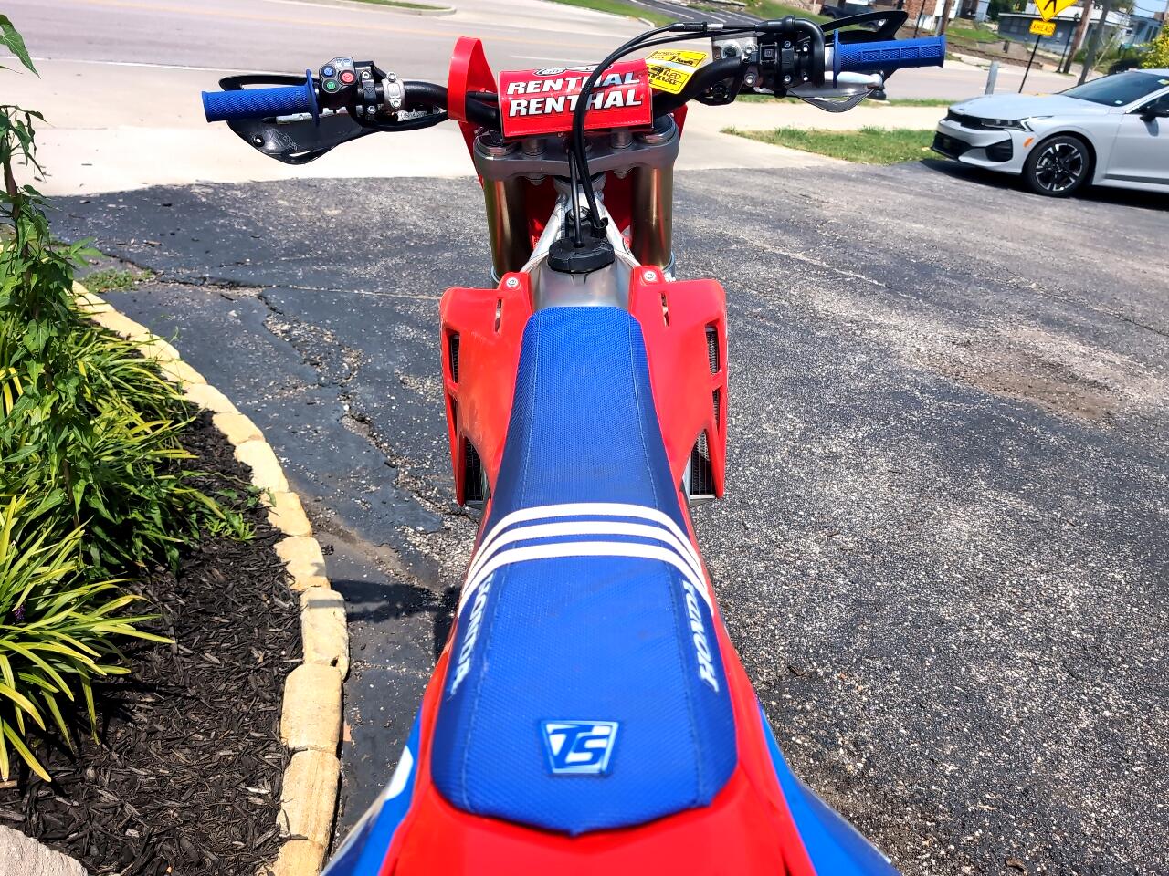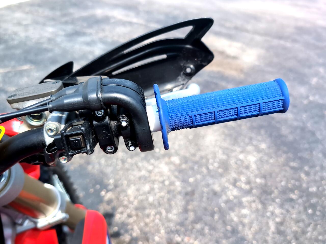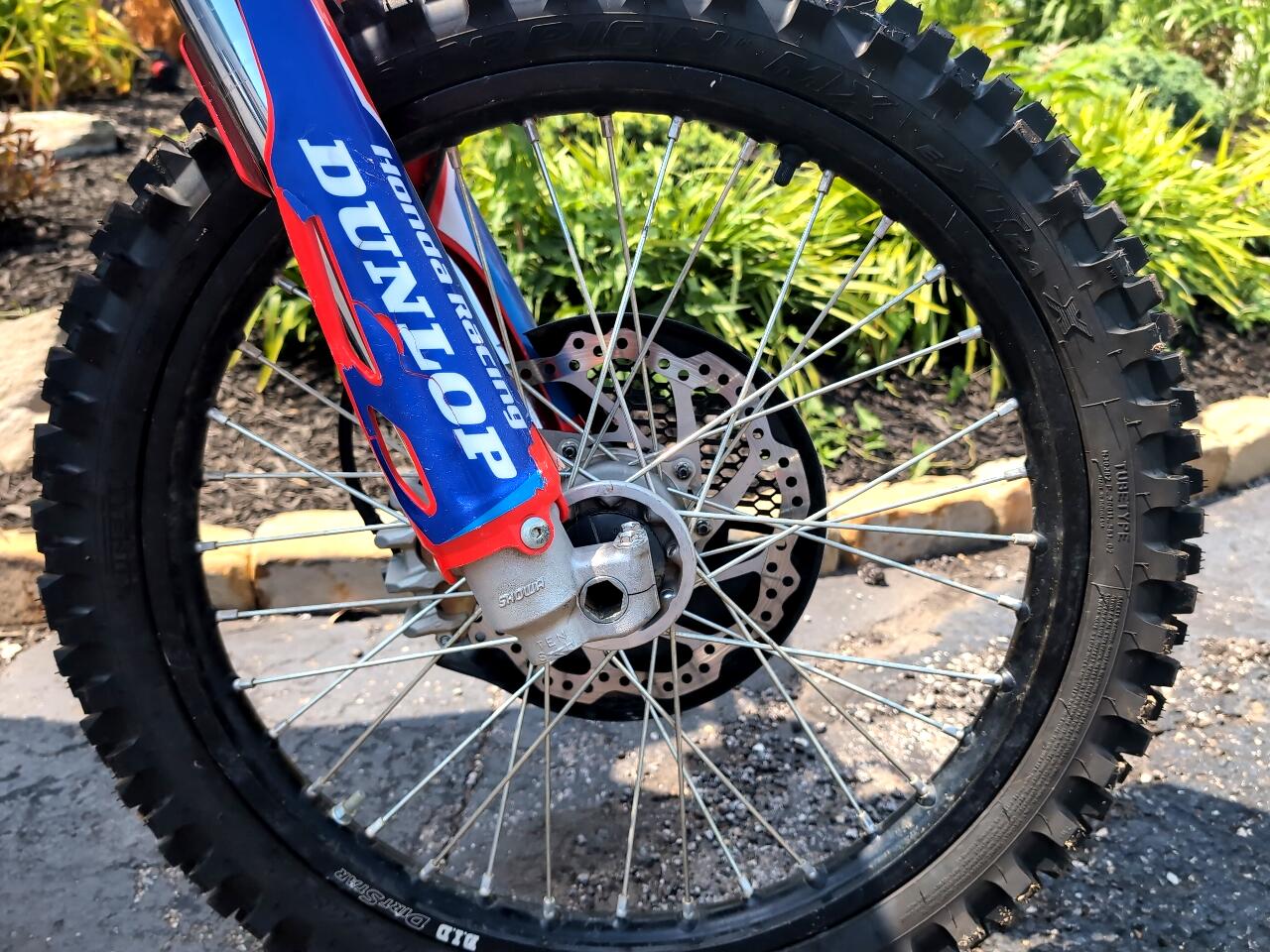 Equipped with powerful petal-style disc brakes and Pirelli Scorpion MX32 tires, this dirt bike gives you the stopping power and grip needed to push your limits. Its lightweight titanium fuel tank, electric start, and HRC Launch Control system give you an edge in every moto, along with three customizable riding modes for varied track conditions.