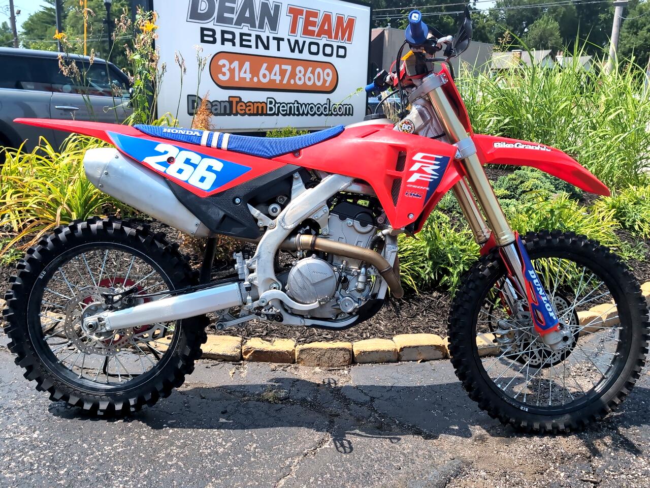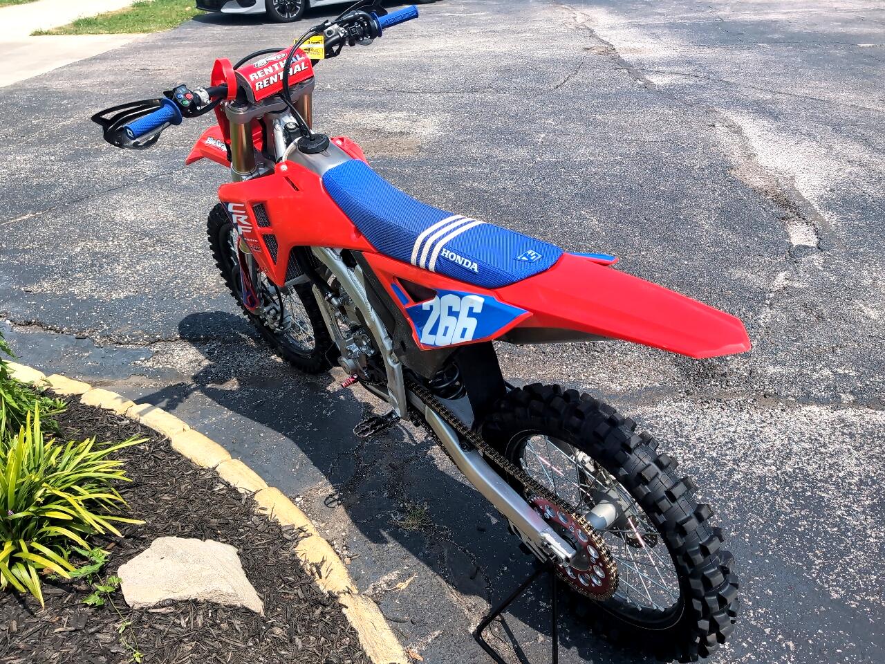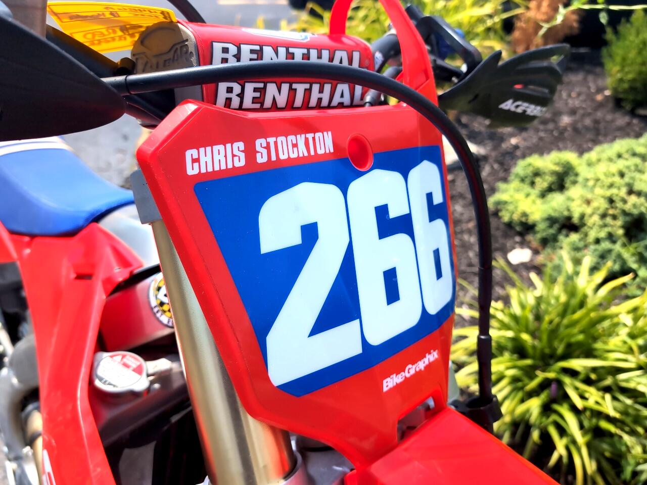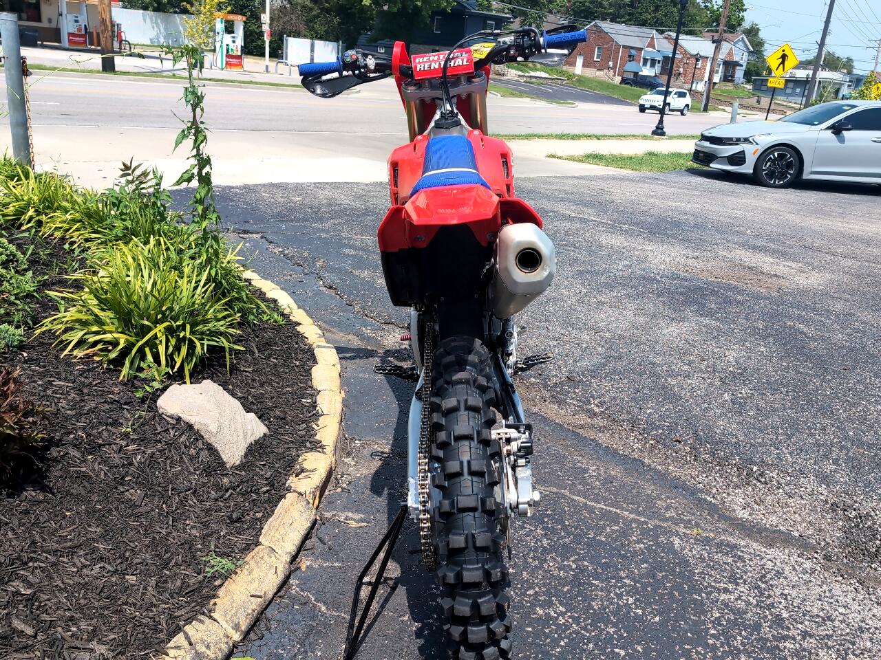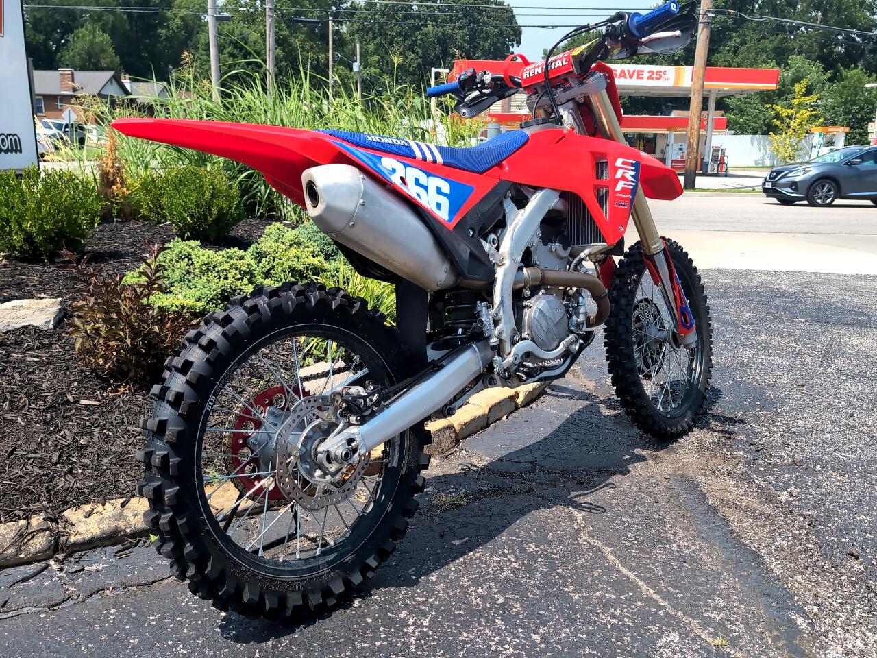 Equipped with powerful petal-style disc brakes and Pirelli Scorpion MX32 tires, this dirt bike gives you the stopping power and grip needed to push your limits. Its lightweight titanium fuel tank, electric start, and HRC Launch Control system give you an edge in every moto, along with three customizable riding modes for varied track conditions.